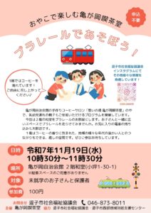 亀が岡自治会館の手作りコーヒーサロン「憩いの場 亀が岡喫茶室」の中で、乳幼児連れの親子もご参加いただけるプログラムを開催しています。