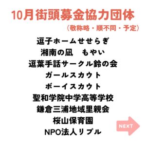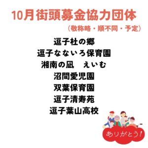 街頭募金も行います。(添付画像にてスケジュールをお知らせします)
